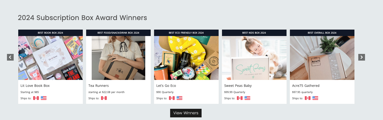As a winner, your box will be prominently featured on the homepage of the A Year of Boxes website for the next year under the “2024 Subscription Box Award Winners” scrolling banner section. Not only is this increased visibility for your box all year round, but it’s also great for your own SEO.